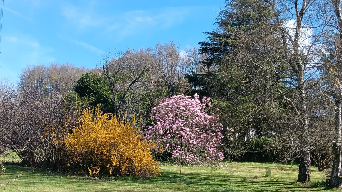 Terrain clos et arboré.