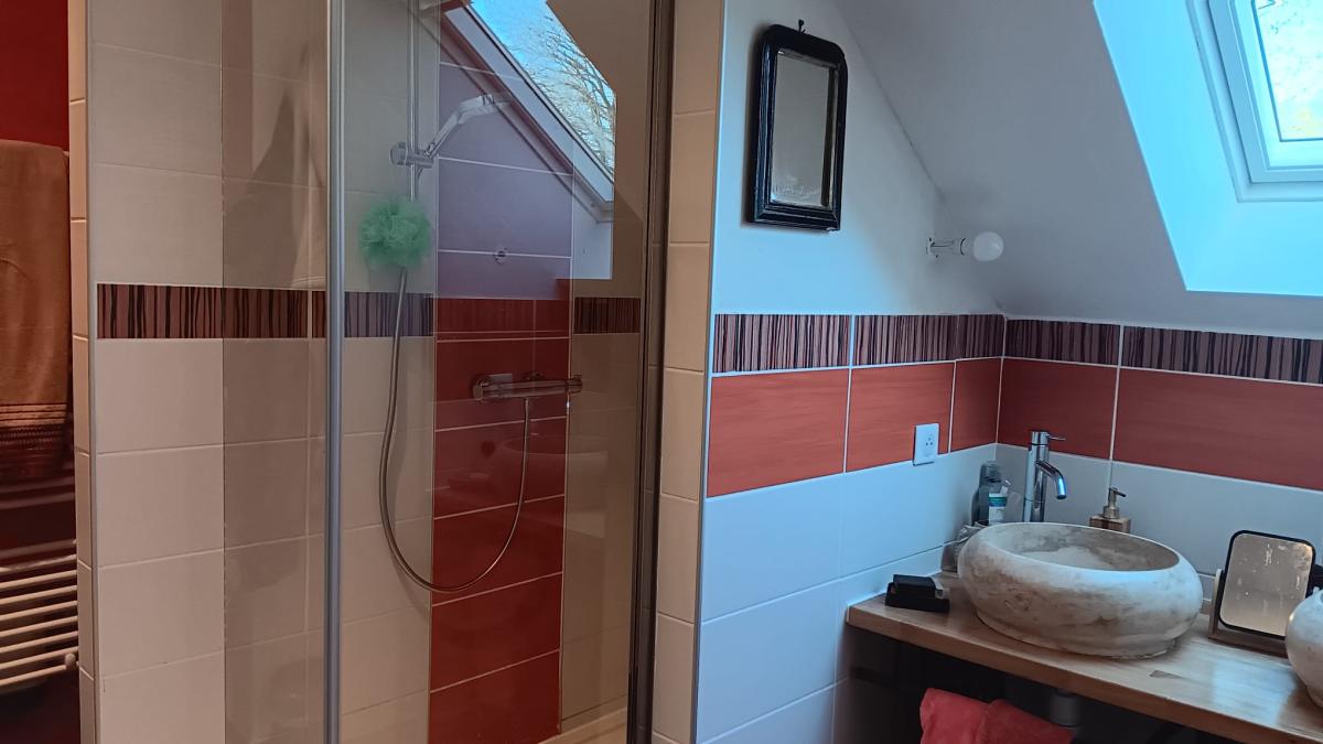 1er étage : mezzanine, deux chambres, salle d’eau avec toilettes, local technique, pièce isolée mais non chauffée pouvant servir de troisième chambre.
